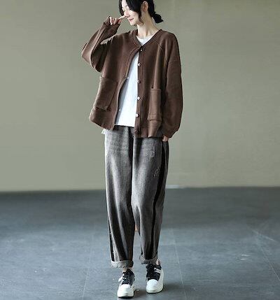 カーディガン レディース 秋 アウター コート ライトアウター ノーカラー トップス 長袖 秋 羽織り スウェット ジャケット スプリングコート 羽織り カジュアル 大人 体型カバー お洒落 20代