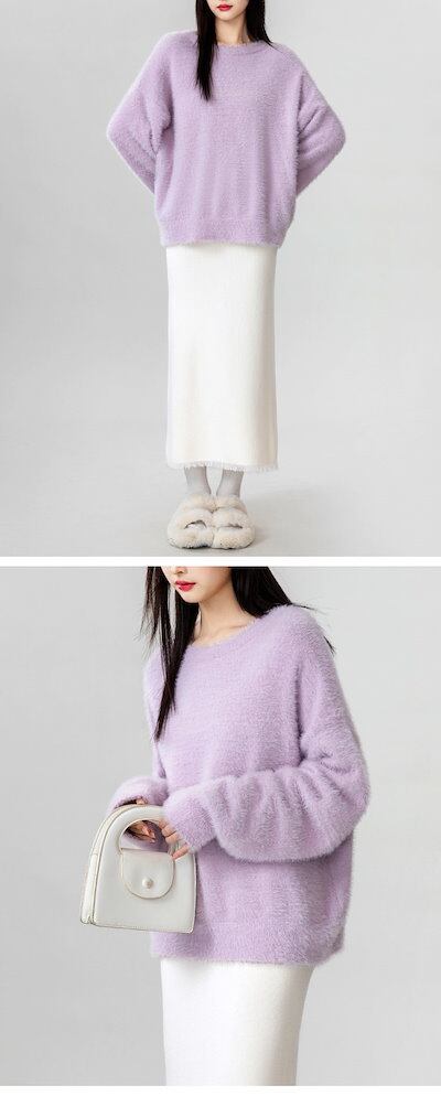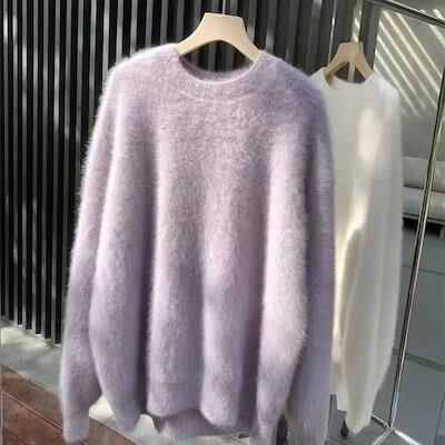 ニットセーター レディース シャギーニット セーター ニット 秋冬 長袖 長袖セーター クルーネック プルオーバー ニットソー インナー 秋 冬 ショート シャギー 無地 ふわふわ カジュアル もこも