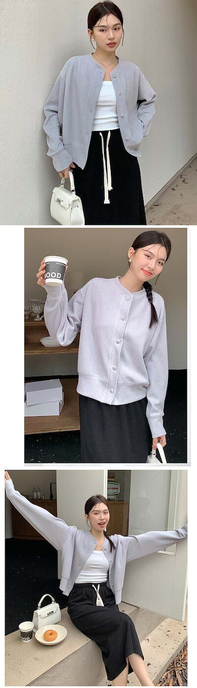 ジャケット ブルゾン スタジャン レディース 春 秋 ショート丈 トップス 無地 長袖 カーディガン トレーナー ノーカラー ライトコート 羽織り 大きいサイズ エレガント 体型カバー かわいい おし