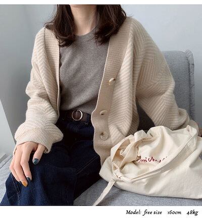 ニットカーディガン レディース 秋冬 ゆったり 秋服 トップス ショート丈 カーディガン 厚手 オフィス アウター 長袖 スクール 大きいサイズ ストライプ 可愛い おしゃれ 暖かい オーバーサイズ