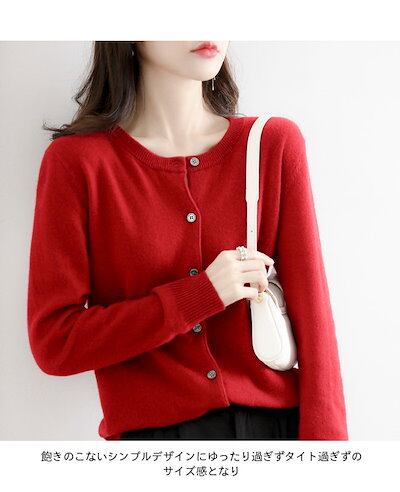 カーディガン レディース ニットカーディガン オフィス ボタンカーディガン シンプル ウール混 暖かい ニットコーディガン おしゃれ ニットトップス 長袖 前あき レッド グレー ホワイト ブラック