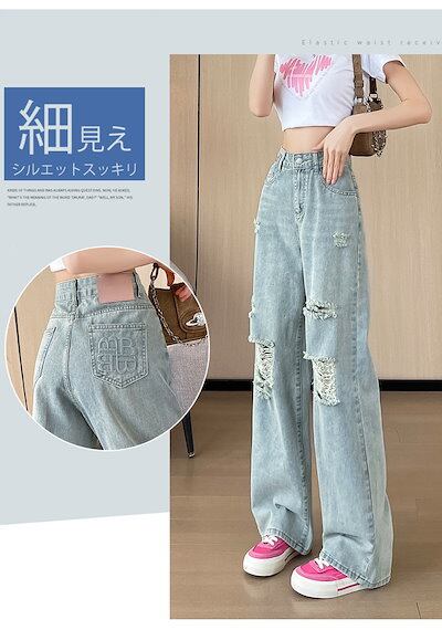 【丈選べる!】デニム パンツ ワイドパンツ レディース デニムパンツ ダメージデニム ダメージ ジーンズ ボトムス ワイド ジーパン ゆったり 大きいサイズ ハイウエスト ダメージパンツ ストレートパ