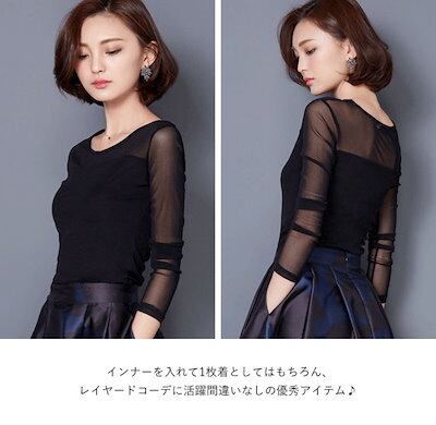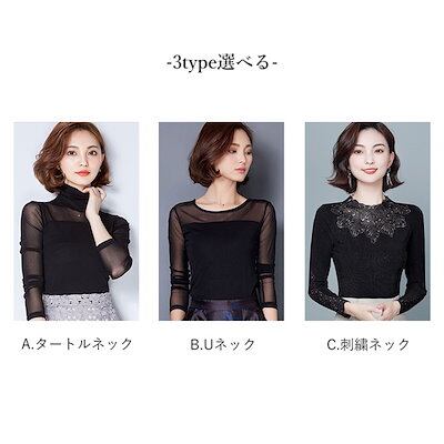 チュール シースルー トップス インナー ハイネック Uネック レディース ブラウス 長袖 カジュアル セクシー 透けレース 無地 エレガントシャツ フェミニン シンプル フォーマル おしゃれ ストレ