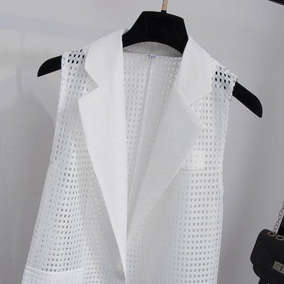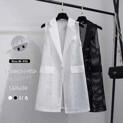 ベスト ロングベスト メッシュ 夏 涼しい ノースリーブコート ベスト 透け感 トップス 袖なし フォーマル コーディネート スーツベスト レディース 新生活