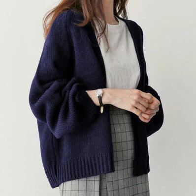 ショット丈 着痩せ ニットカーディガン アウター ルームウェア 韓国ファッション 秋ジャケット セーター
