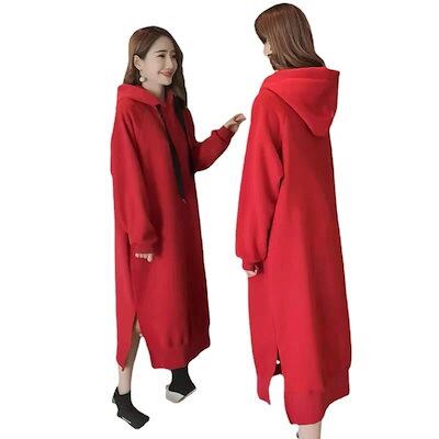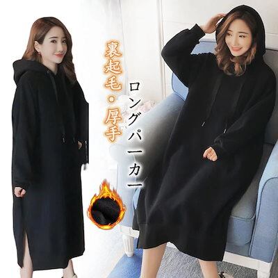 フーディー 裏起毛 レディース 福袋 パーカーワンピース スウェットワンピース 厚手 ゆったり プルオーバー ロング丈 パーカー 膝下丈 パーカー サイドスリット