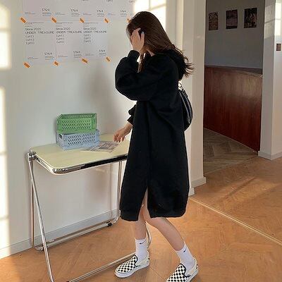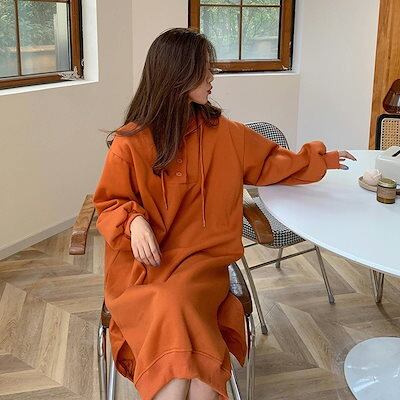 秋ロングパーカー スウェットワンピース 韓国ファッション着痩せ百掛け パ一力一トレンドはビッグロゴ 春 レディース