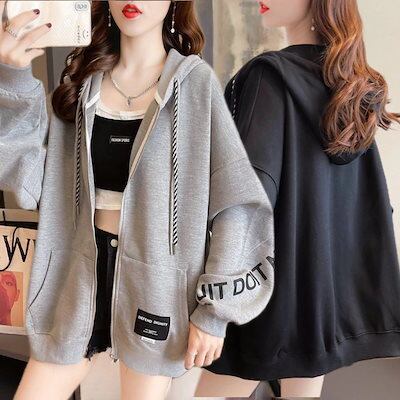 韓国 可愛い カーディガン レディース 運動 ゆったり長袖 パーカー 秋アウター oversize怠惰な風 大人 カジュアルコー 春 トップス パーカート