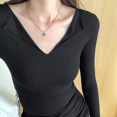 レディース 薄手 長袖Tシャツ タイト Vネック 新しいスタイル トップス ボトムシャツ ロンT