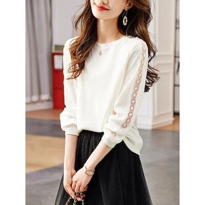 ラウンドネック トップス 長袖Tシャツ ニット レース 秋 新しいスタイル テクスチャー ロンT
