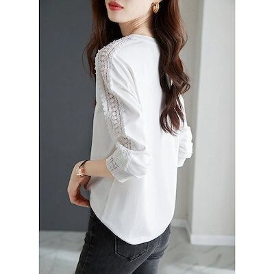 ファッション 長袖Tシャツ レース 秋 ロンT ボトムシャツ トップス 2024