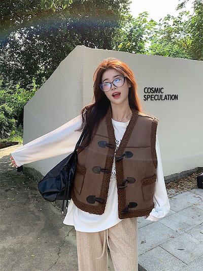 【2枚購入で 2oo円OFF!】新作 おしゃれ シンプル ベスト トップス アウター 百掛け 可愛い ベスト 厚手 裏起毛 防寒AWアウター