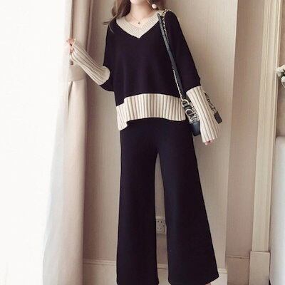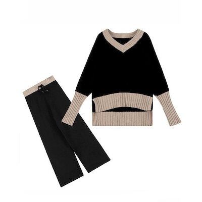 【2枚購入で 2oo円OFF! 】ニットセットアップ レディース ニット セット 高級感 新作 おしゃれ 気質 Vネックセーター 上下セット 大きいサイズニット 大きめ ゆったりニット 福袋