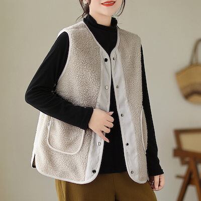 【2枚購入で 2oo円OFF!】ラムズウール ノースリーブ 秋冬 ゆったり プラッシュ ベスト シンプル ふわふわ トップス アウター 裏起毛 厚手 ショット丈 防寒 ウォームウォーム ラムズフリース