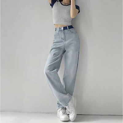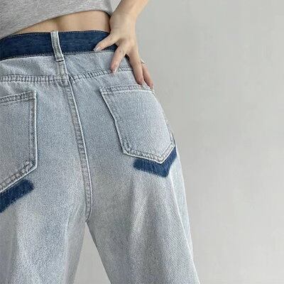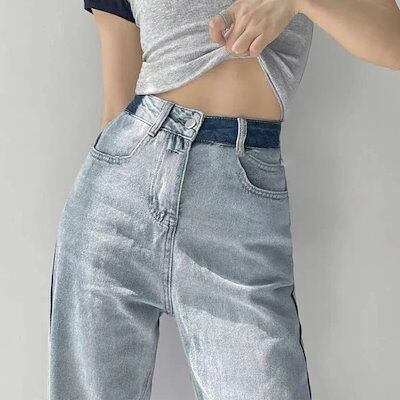 デニム レディース パンツ おしゃれ バイカラー 個性的 カジュアル ハイウエスト ストレート バイカラー 韓国