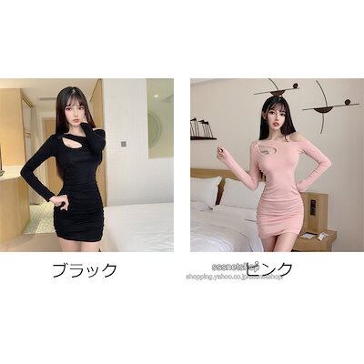 ワンピース レディース 斜めの襟 ミニ丈 長袖 純色 フェミニン シンプル ファッション セクシー オシャレ お出かけ 同窓会 謝恩会 2021新作sssnetshop