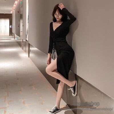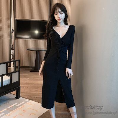 ワンピース レディース Vネックワンピース ミニ丈ワンピース 長袖ワンピース セクシー 無地 ファッション 着痩せ 細身 可愛い 気質 お嬢様sssnetshop