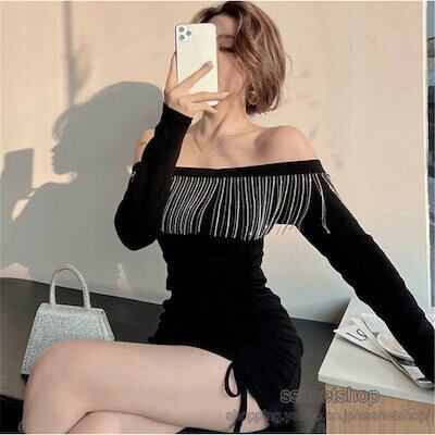 ワンピース レディース 長袖ワンピース ミニ丈ワンピース オフ ショルダーワンピース パーティー オシャレ タイト 着痩せ 細身 セクシー 気質sssnetshop