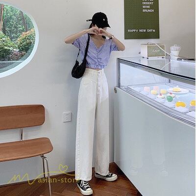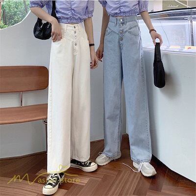 デニム レディース カジュアル 着痩せ ハイウエスト ロングパンツ 2021新作 ワイドパンツ ゆったり おしゃれ ジーンズ デニムパンツ ポケット カジュアル 女性