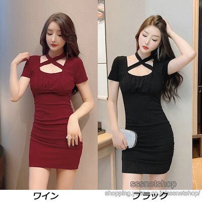 ワンピース レディース クエアカラーネックワンピース 半袖ワンピース ミニ丈ワンピース 着痩せ 細身 パーティー タイト モノグラム セクシーsssnetshop