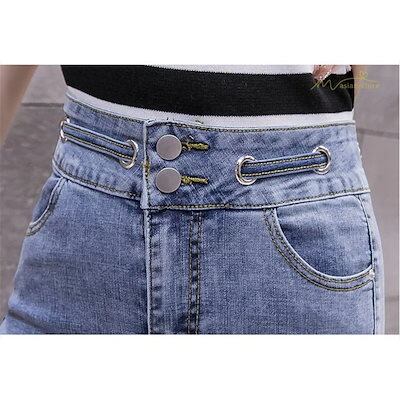 デニムパンツ シンプル スキニー レギパン ハイウエスト スタイリッシュ カジュアル 細身 人気 オシャレ レディース セクシー 二つボタン付き リボンデザイン
