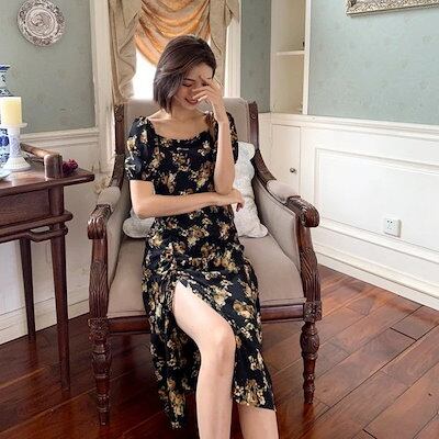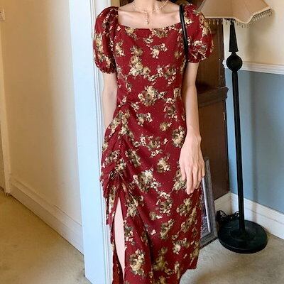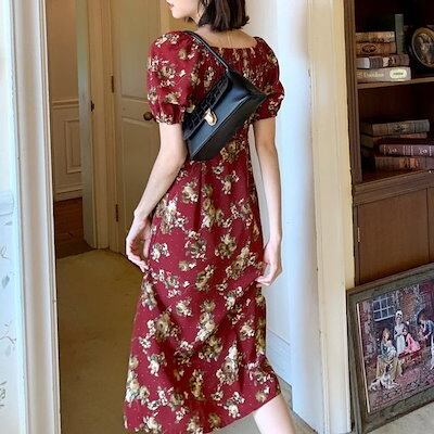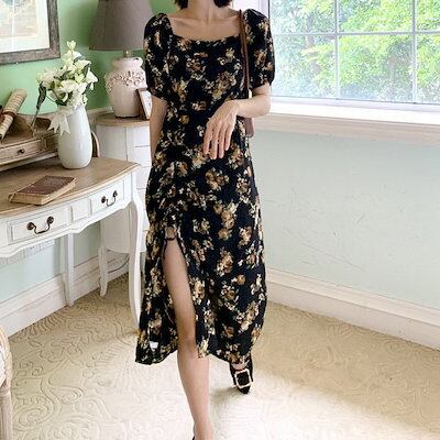 ワンピース レディース 40代 マキシワンピース 春夏新作 半袖ワンピース パフスリーブワンピース 花柄スカート オシャレ韓国風 大人 結婚式 お出かけ 30代50代