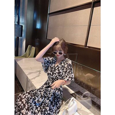 ワンピース レディース 40代ワンピース 春夏 半袖 シフォンワンピース 花柄 マキシワンピース Vネック オシャレ 結婚式ドレス お出かけ 大人 30代 50代
