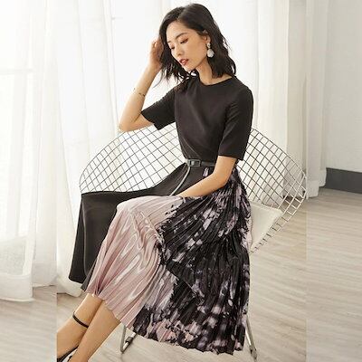 ワンピース レディース 40代 キレイめ マキシワンピース 春夏 半袖ワンピース 切り替え プリーツスカート オシャレ 体型カバー 上品 大人可愛い30代 50代