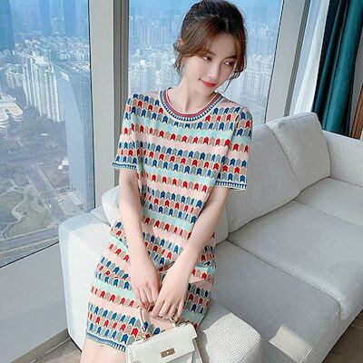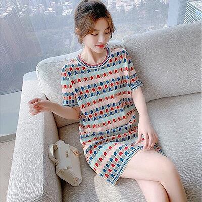 ワンピース レディース 40代 きれいめ 膝丈ワンピース 春夏新作 半袖ワンピース ボーダー柄 ロング丈tシャツスカートオシャレ韓国風 大人 結婚式ドレス ゆったり