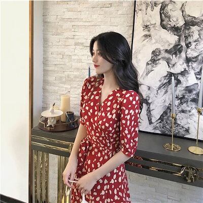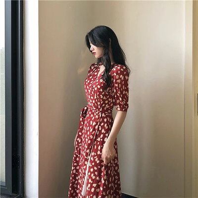 ワンピース レディース キレイめ ひざ丈 春夏 半袖ワンピース ベルト付き シフォンスカート vネック 韓国風 大きいサイズ 通勤 OL オシャレ 上品 着痩せ