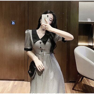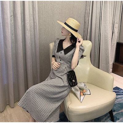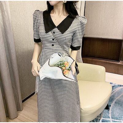 ワンピース レディース 40代 キレイめ マキシワンピース 春夏 半袖ワンピース チェック柄 パフスリーブ フレアスカート オシャレ 韓国風 大きいサイズ 大人