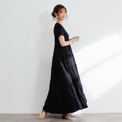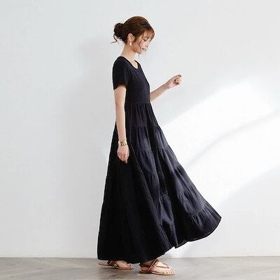 ワンピース レディース 40代 キレイめ マキシワンピース 春夏 半袖ワンピース 無地フレアスカート オシャレ韓国風 結婚式 通勤 お出かけ ゆったり 30代 50代