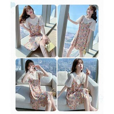 レースワンピース レディース 40代 膝丈ワンピース 春夏 半袖ワンピース パフスリーブ きれいめ 花柄シフォン切り替え 上品 オシャレ結婚式 お出かけ ゆったり