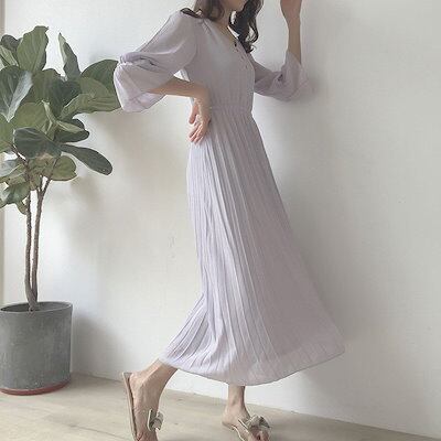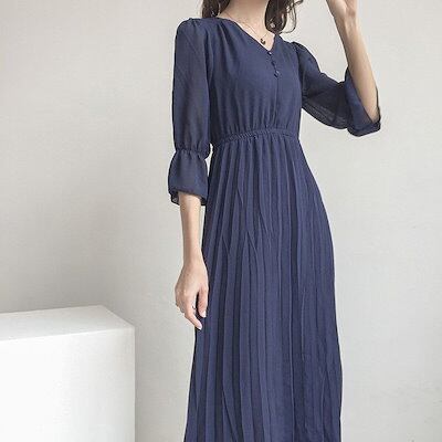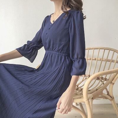 ワンピース レディース 春夏 マキシワンピース 五分袖ワンピース シフォン 無地フレアワンピース ロング 韓国風 オシャレ 着痩せ 結婚式ドレス 40代 大人