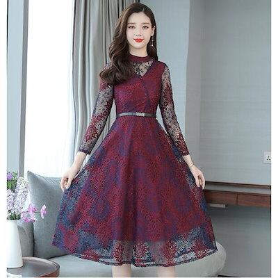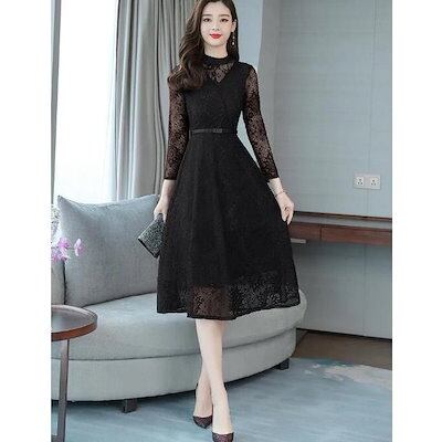 ワンピース レディース きれいめ 結婚式 ドレス レースワンピース 長袖 Aライン パーティードレス 上品 フォーマル ママワンピース 40代50代