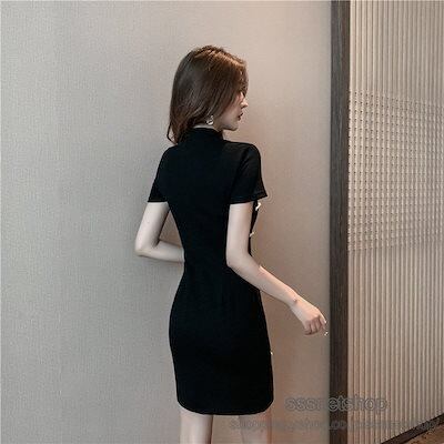チャイナドレス レディース ミニワンピース ワンピース スリット 半袖 ヒップラップ ヒップワンピース タイトワンピース 無地 シンプル セクシー sssnetshop