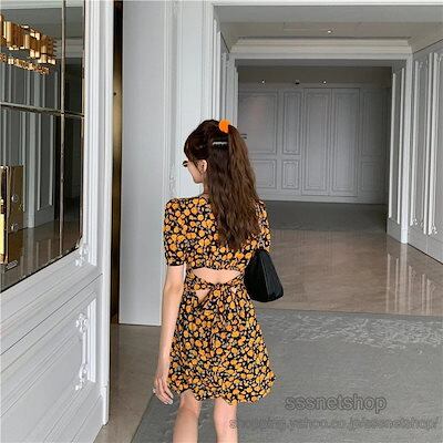 シフォンワンピース レディース スクエアネック 背中開き ミニ丈 ミニワンピース フェミニン セクシー エレガント ファッション フランス風 sssnetshop