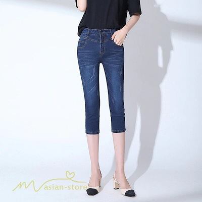 パンツ デニム ジーンズ 7分丈 着痩せ レディース 無地 夏コーデ 細身 新作 ハイウエスト スキニーパンツ 着回し きれいめ 美脚 ポケット 定番 通勤通学 日常感