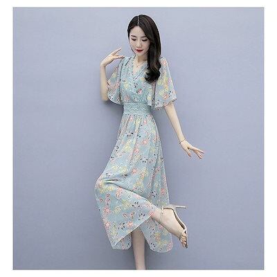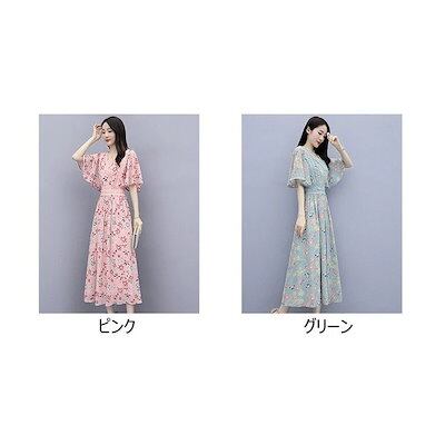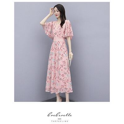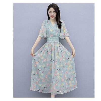 ワンピース レディース 40代 マキシワンピース 春夏 半袖ワンピース 花柄ワンピ シフォン フレアスカート オシャレ 結婚式ドレス お出かけ 大人可愛い30代 50代