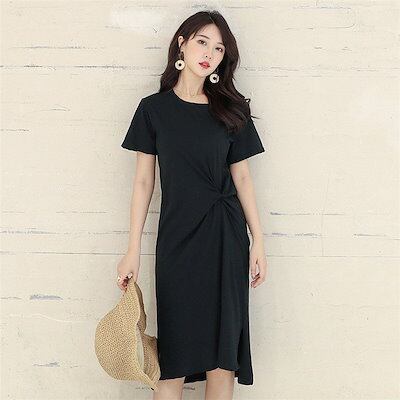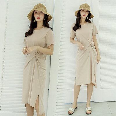ワンピース レディース 春夏 半袖 無地 ワンピース きれいめ 大きいサイズ きれいめ 着痩せ 旅行 大人 上品 新作 韓国風 不規則性