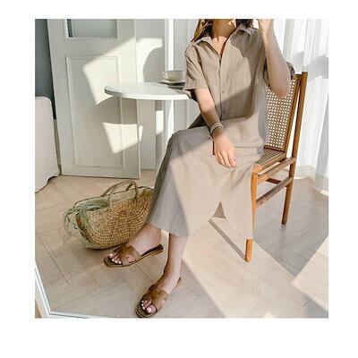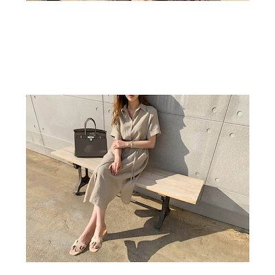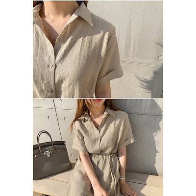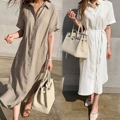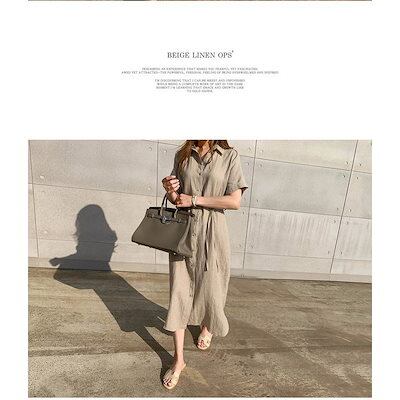 ロングワンピース 夏 半袖 コットンリネン ゆったり 無地 ベルト付き 体型カバー Aライン おしゃれ ママワンピース 上品 大人 夏物 30代 40代 50代