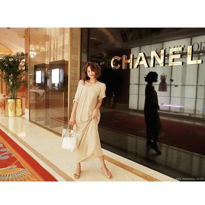 ワンピース レディース 40代 マキシワンピース 春夏 半袖ワンピース Vネック 黒 モダール綿 ゆったり 体型カバー 韓国風 オシャレ 大人 30代 50代