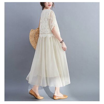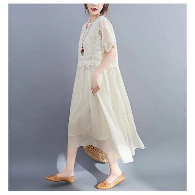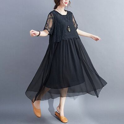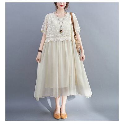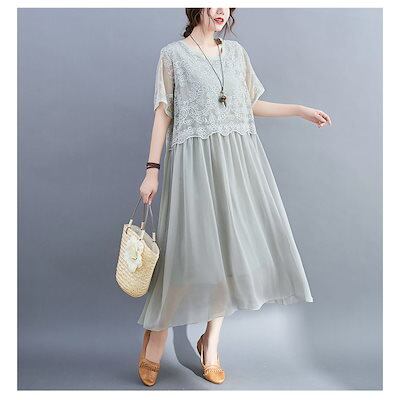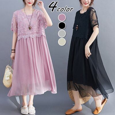ワンピース レディース 40代 キレイめ マキシワンピース 春夏 半袖ワンピースレース シフォンスカート 結婚式ドレス 大きいサイズ オシャレ 30代 50代