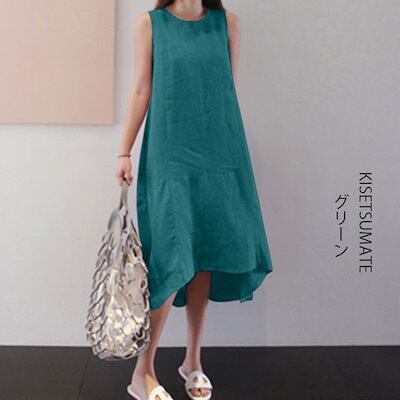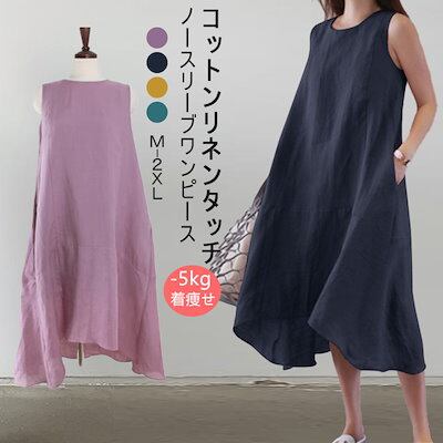 ワンピース レディース 夏 ノースリーブ 綿麻ワンピース きれいめ ロング レディース リネン風 森ガール マキシワンピース ゆったり 大きいサイズ 体型カバー シンプル