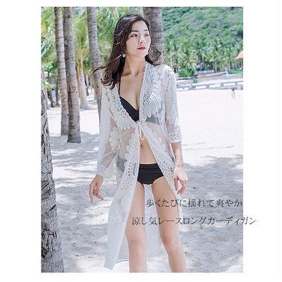 レースカーディガン 日焼け防止 ビーチウェア ビキニカバー ビキニブラウス ビーチドレス ボヘミアン 透け感 シースルー 羽織 お呼ばれ