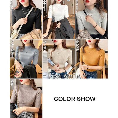 モックネック ニットトップス レディース 五分袖韓国
