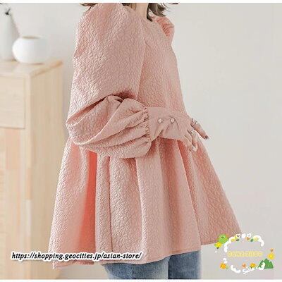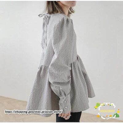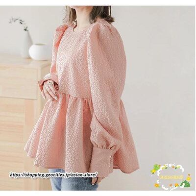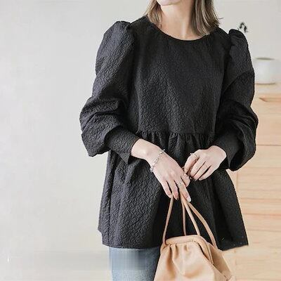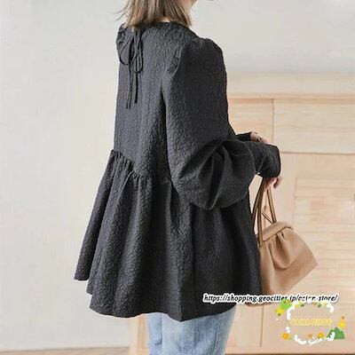 パフスリーブブラウス 長袖ブラウス レディース トップス 春コーデ 秋物 Tシャツ 長袖シャツ ギャザー フレア 無地 大人 30代40代 可愛い 20代 ブラウス OL