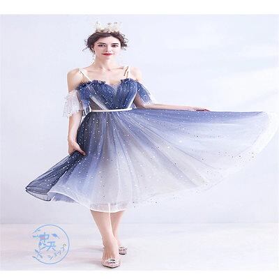 パーティードレス 花嫁ドレス ブライドメイドドレス 膝丈ワンピース ワンピースレディース Aライン スパンコール チュール 謝恩会 披露宴 結婚式 きれいめ