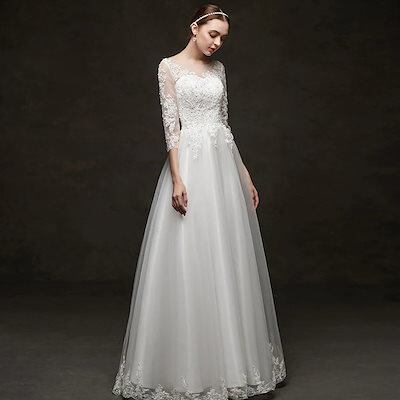 海外挙式ウェディングドレス レースドレス 結婚式 披露宴 刺繍ブライダル フォーマルプリンセスライン演奏会/お嫁さん/発表会/花嫁 編み上げ 撮影成人式 前撮り