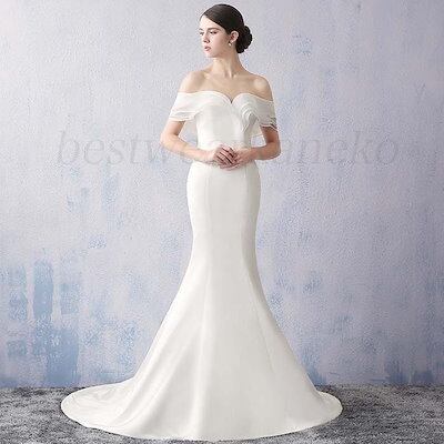 ウェディングドレス マーメイドドレス 白 ロングドレス 花嫁ドレス トレーン パーティードレス オフショルダー 大人気 高級 二次会 ブライダルドレス